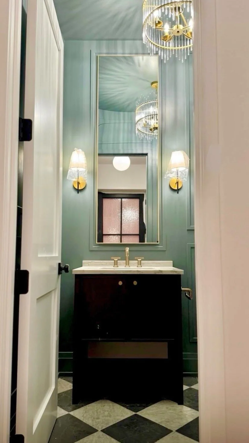 Louise Johnston Design created a playful theme for this gender neutral nursery. Pattern, color, and texture were layered into the design with a vibrant, multi-colored rug, textured pillow and footrest, navy gingham wallpaper, and a collection of whimsical accessories. A large arial beach print and colorful hand-painted plates were mounted on the wall to add another splash of colour and brass accessories helped to tie the gender neutral design together. How cute is that brass duck lamp!